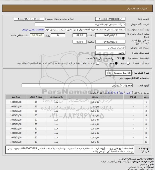اسناد مناقصه استعلام IC (مدار مجتمع) و خازن به علت اتمام مهلت شرکت در مناقصه از روی وب سایت برداشته شده است. برای رویت اسناد جدید به صفحه اسناد مناقصه مزایده مراجعه کنید.