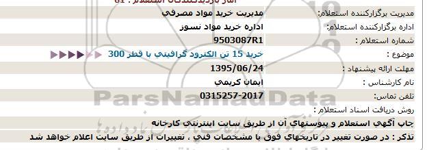 موضوع : خرید 15 تن الكترود گرافیتی با قطر 300