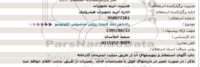 اداره برگزارکننده استعلام: اداره خرید تجهیزات هیدرولیک
