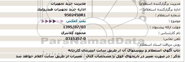 اداره برگزارکننده استعلام: اداره خرید تجهیزات هیدرولیک