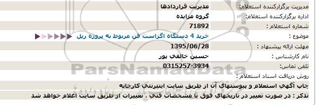 موضوع : خرید 4 دستگاه اگزاست فن مربوط به پروژه ریل