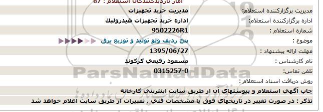 استعلام پنج ردیف ولو تولید و توزیع برق, استعلام , استعلام پنج ردیف ولو تولید و توزیع برق