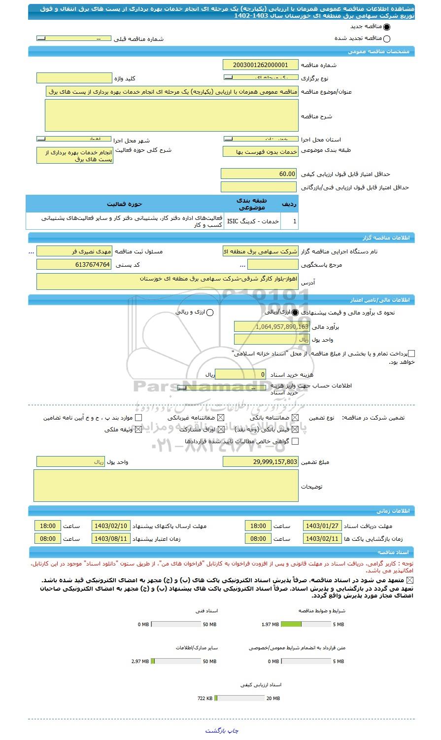 | مبلغ تضمین | 29,999,157,803 | واحد پول | ریال |
