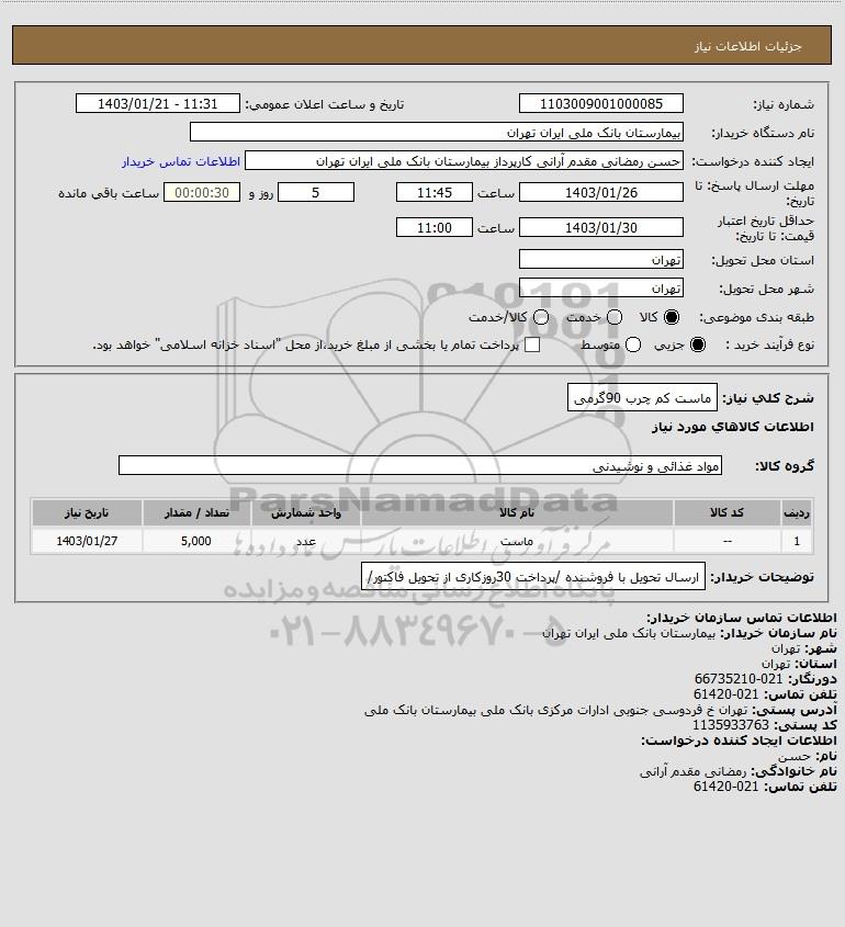 نام سازمان خریدار: بیمارستان بانک ملی ایران تهران