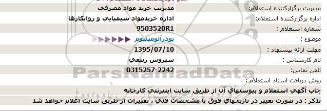 اداره برگزارکننده استعلام: اداره خرید مواد شیمیایی و روانکارها