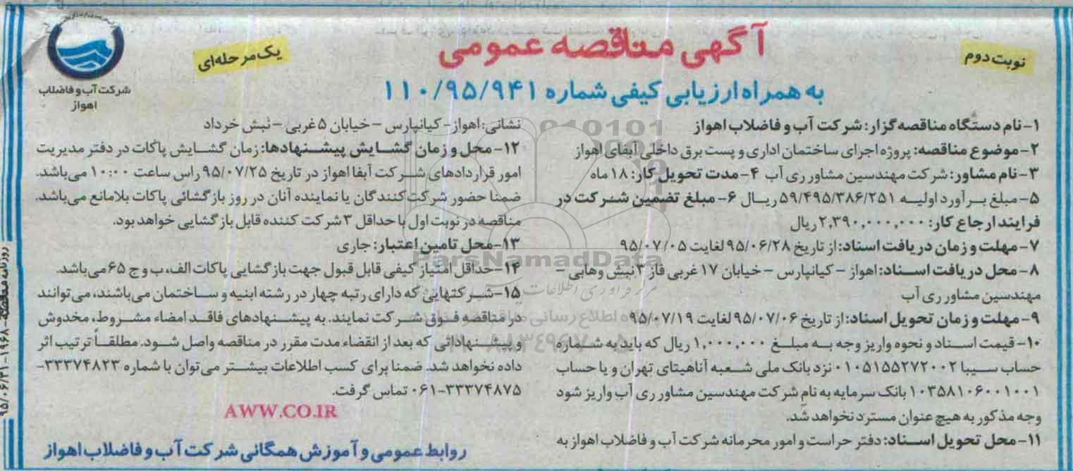 2-موضوع مناقصه: پروژه اجرای ساختمان اداری و پست برق داخلی آبفای اهواز
