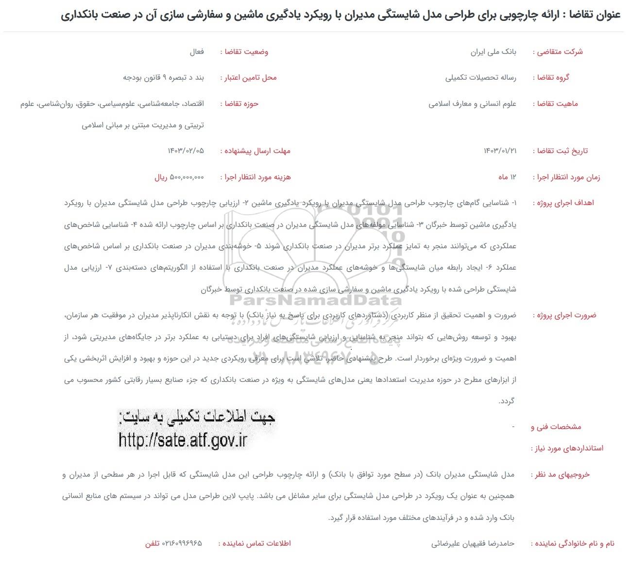 فراخوان ارائه چارچوبی برای طراحی مدل شایستگی مدیران با رویکرد یادگیری ماشین و سفارشی سازی آن در صنعت بانکداری, فراخوان ارائه چارچوبی برای طراحی مدل شایستگی مدیران با رویکرد یادگیری ماشین و سفارشی سازی آن در صنعت بانکداری