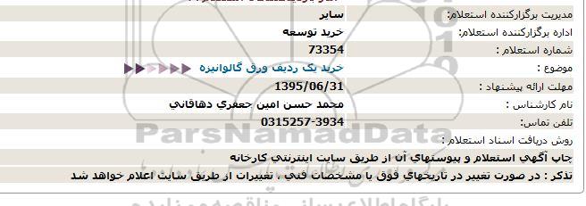 موضوع : خرید یک ردیف ورق گالوانیزه