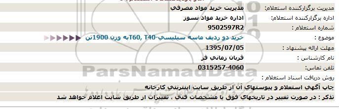 موضوع : خرید دو ردیف ماسه سیلیسی-T60, T40به وزن 1900تن