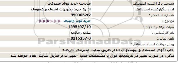 اداره برگزارکننده استعلام: اداره خرید تجهیزات ایمنی و عمومی