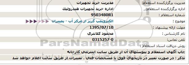 استعلام الکتروپمپ گریز از مرکز آب - پمپیران, استعلام , استعلام الکتروپمپ گریز از مرکز آب - پمپیران