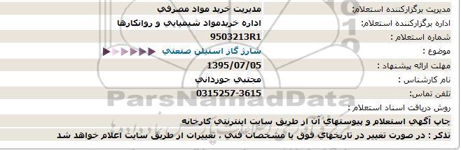 اداره برگزارکننده استعلام: اداره خرید مواد شیمیایی و روانکارها