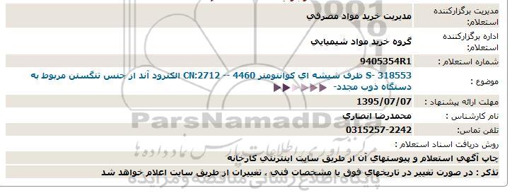 اداره برگزارکننده استعلام: گروه خرید مواد شیمیایی