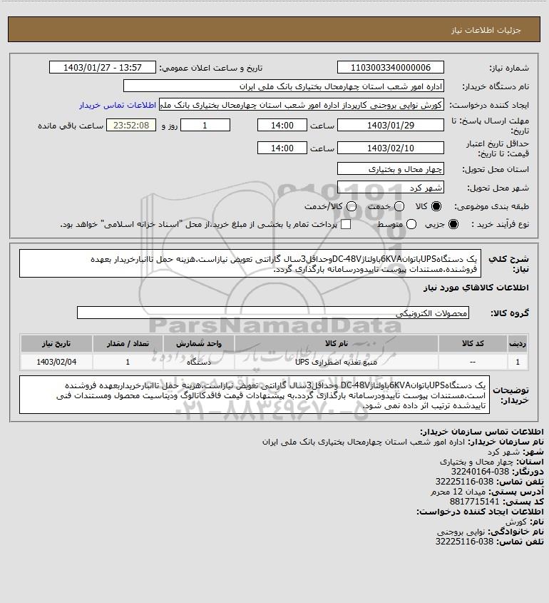 نام سازمان خریدار: اداره امور شعب استان چهارمحال بختیاری بانک ملی ایران