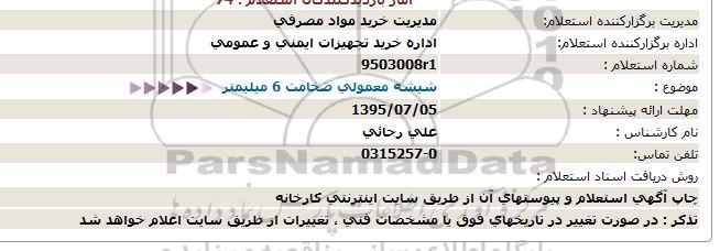 اداره برگزارکننده استعلام: اداره خرید تجهیزات ایمنی و عمومی