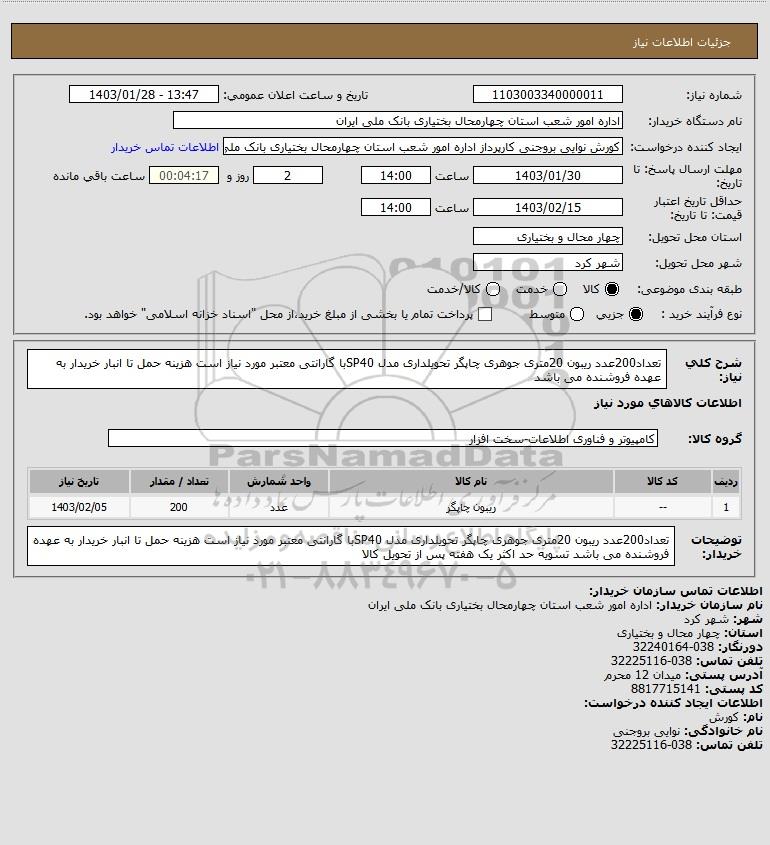 نام دستگاه خریدار:اداره امور شعب استان چهارمحال بختیاری بانک ملی ایران