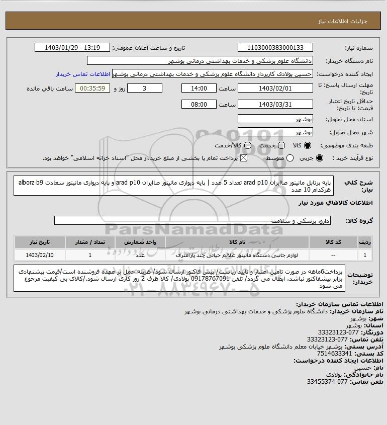 نام سازمان خریدار: دانشگاه علوم پزشکی و خدمات بهداشتی درمانی بوشهر