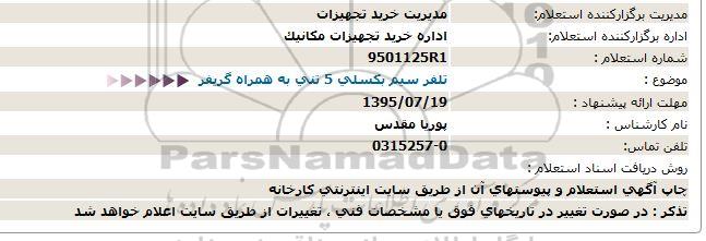 اداره برگزارکننده استعلام: اداره خرید تجهیزات مکانیک