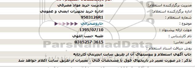 اداره برگزارکننده استعلام: اداره خرید تجهیزات ایمنی و عمومی