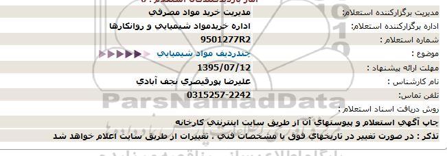 اداره برگزارکننده استعلام: اداره خرید مواد شیمیایی و روانکارها