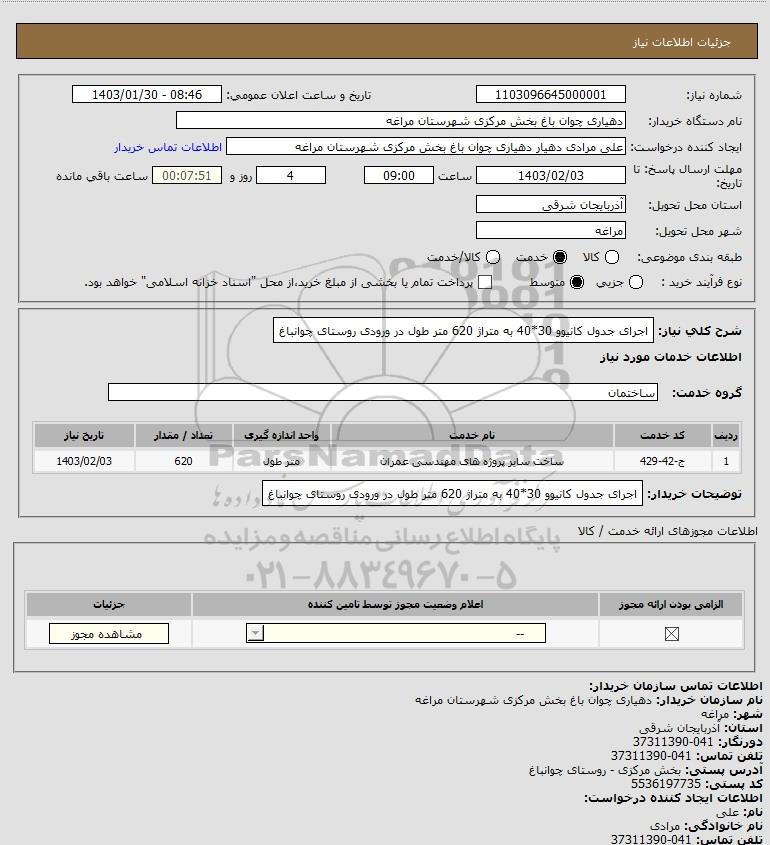 نام دستگاه خریدار:دهیاری چوان باغ بخش مرکزی شهرستان مراغه