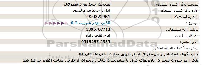 اداره برگزار کننده استعلام اداره خرید مواد نسوز