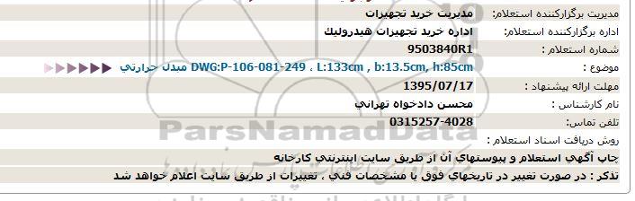 اداره برگزارکننده استعلام: اداره خرید تجهیزات هیدرولیک