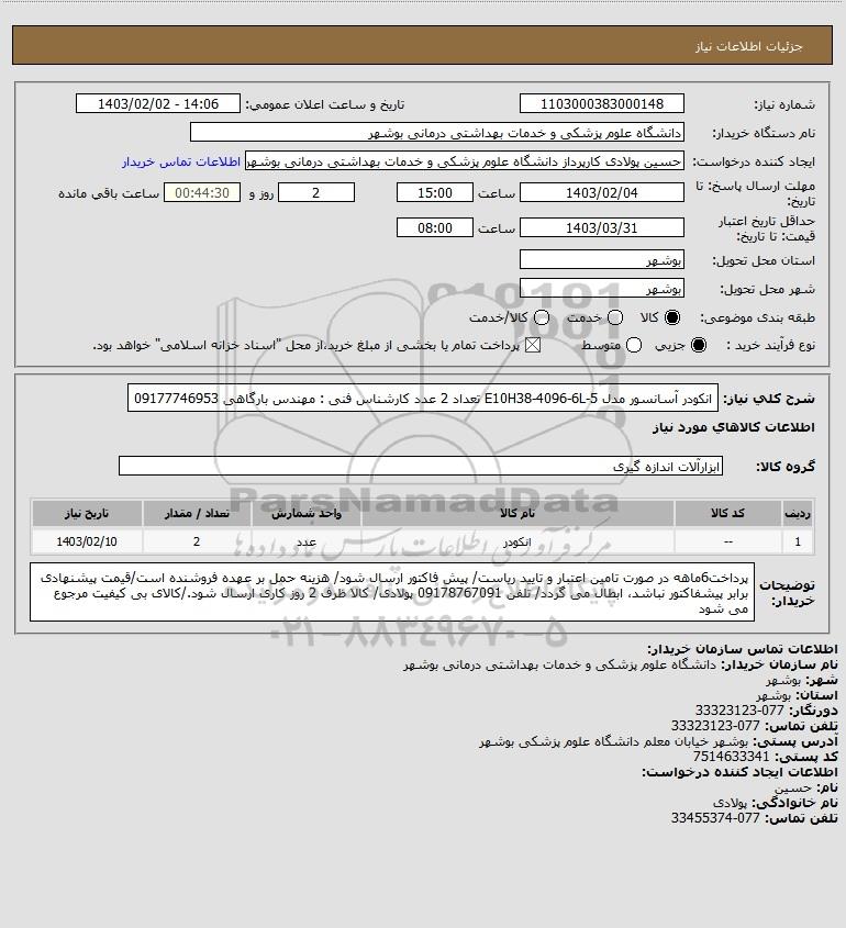 نام دستگاه خریدار:دانشگاه علوم پزشکی و خدمات بهداشتی درمانی بوشهر