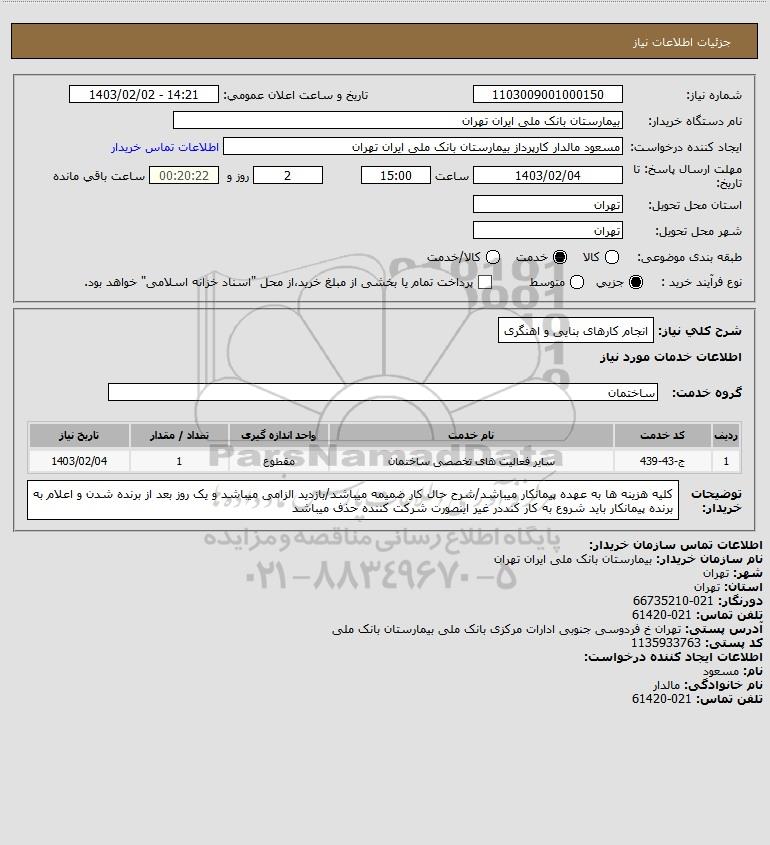 شرح کلی نیاز: انجام کارهای بنایی و اهنگری