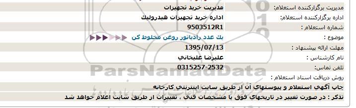 اداره برگزارکننده استعلام: اداره خرید تجهیزات هیدرولیک