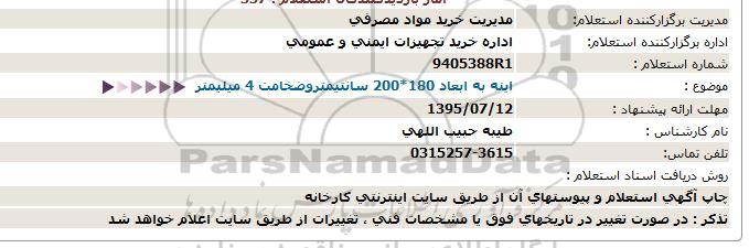 موضوع : استعلام آینه به ابعاد 180*200 سانتی متر و ضخامت 4 میلیمتر