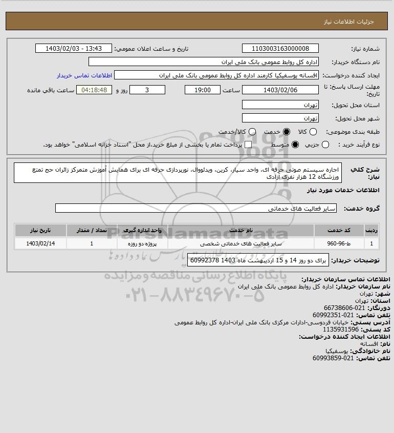 نام دستگاه خریدار:اداره کل روابط عمومی بانک ملی ایران