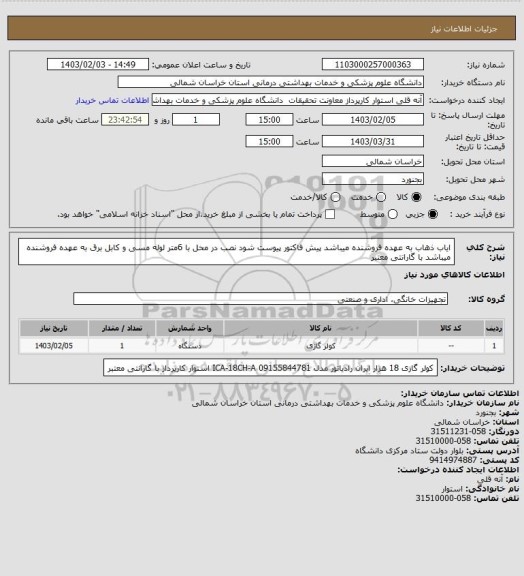 نام دستگاه خریدار:دانشگاه علوم پزشکی و خدمات بهداشتی درمانی استان خراسان شمالی