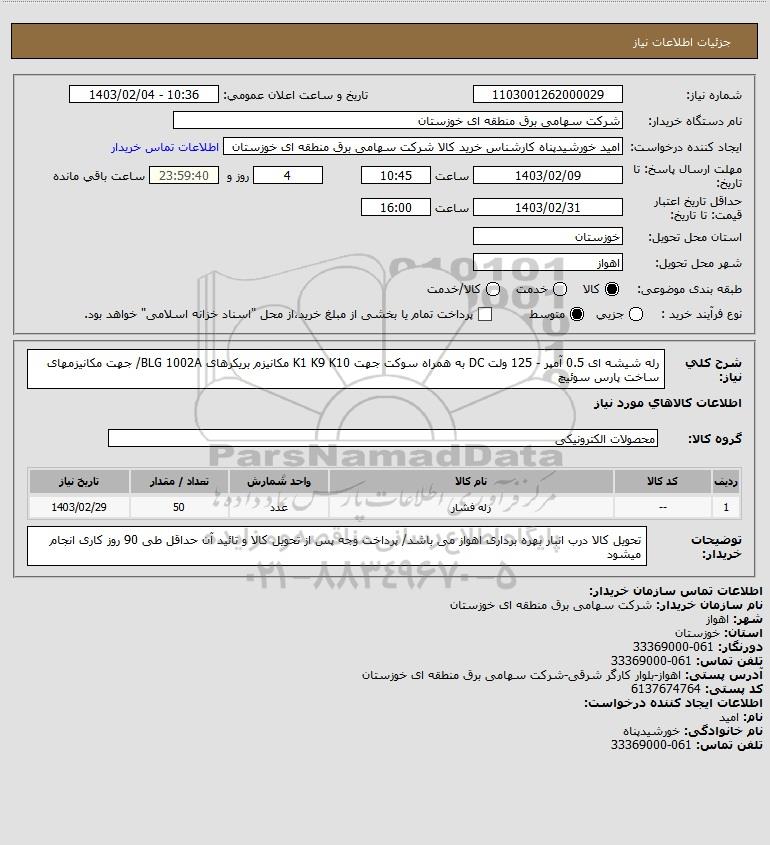 نام دستگاه خریدار:شرکت سهامی برق منطقه ای خوزستان