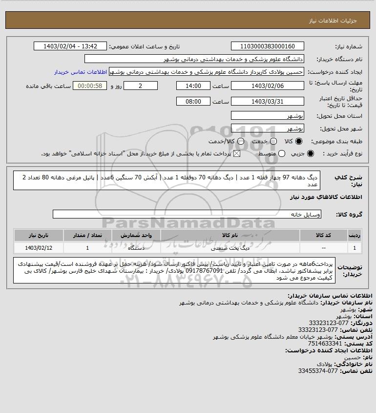 نام دستگاه خریدار:دانشگاه علوم پزشکی و خدمات بهداشتی درمانی بوشهر