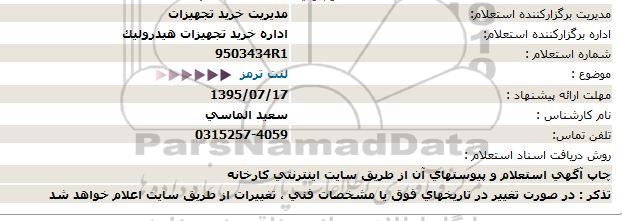 اداره برگزارکننده استعلام: اداره خرید تجهیزات هیدرولیک
