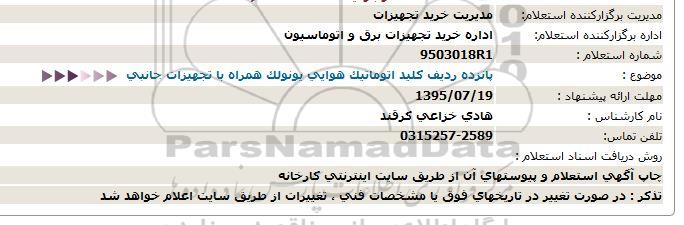 اداره برگزارکننده استعلام: اداره خرید تجهیزات برق و اتوماسیون