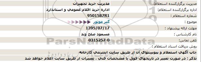 اداره برگزارکننده استعلام: اداره خرید اقلام عمومی و استاندارد