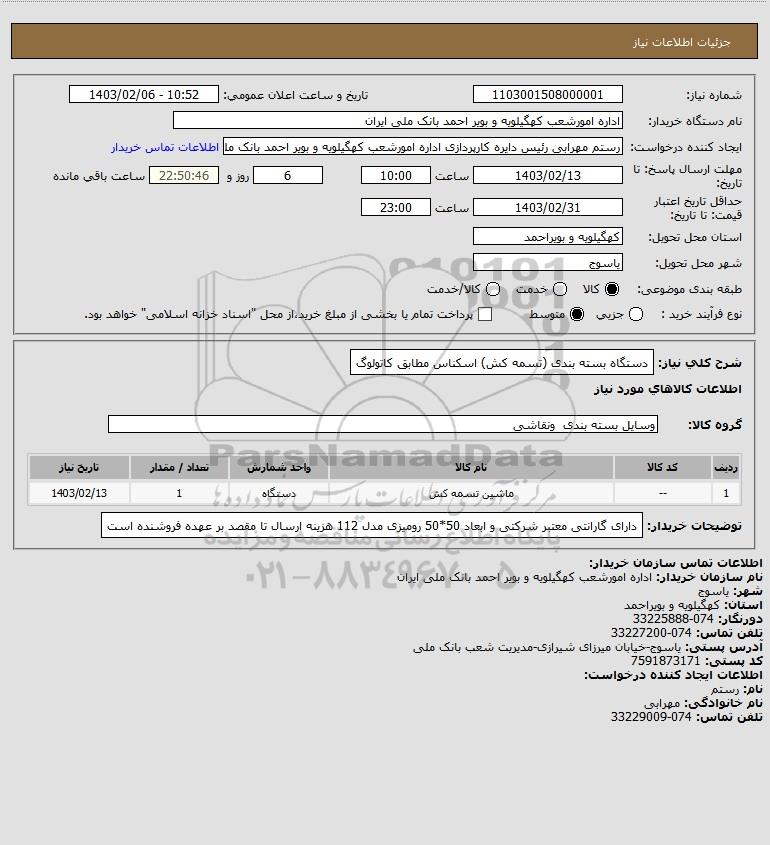 استعلام دستگاه بسته بندی (تسمه کش) اسکناس مطابق کاتولوگ, استعلام دستگاه بسته بندی (تسمه کش) اسکناس مطابق کاتولوگ