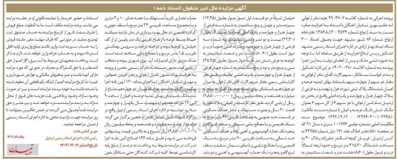 زمان مزایده از ساعت 9 الی 12 روز دوشنبه مورخه هفدهم اردیبهشت سال یکهزار و چهارصد و سه