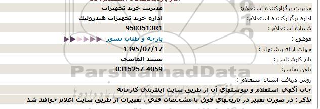 اداره برگزارکننده استعلام: اداره خرید تجهیزات هیدرولیک