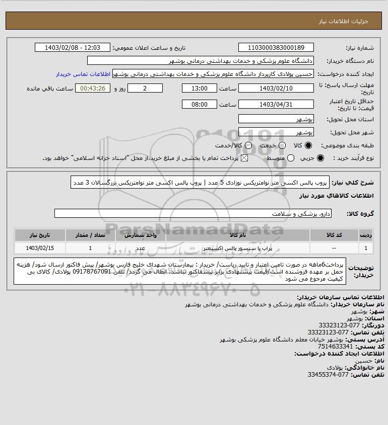 نام دستگاه خریدار:دانشگاه علوم پزشکی و خدمات بهداشتی درمانی بوشهر