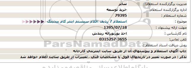 موضوع : استعلام 7 ردیف اقلام سیستم اینتر كام پیجینگ