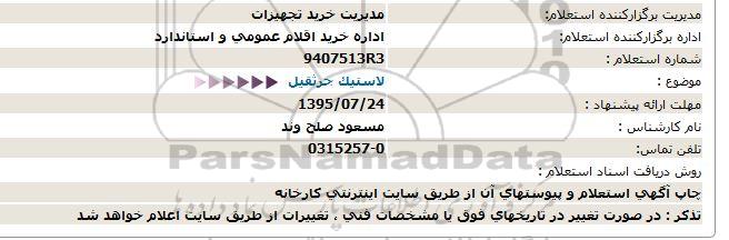 اداره برگزارکننده استعلام: اداره خرید اقلام عمومی و استاندارد
