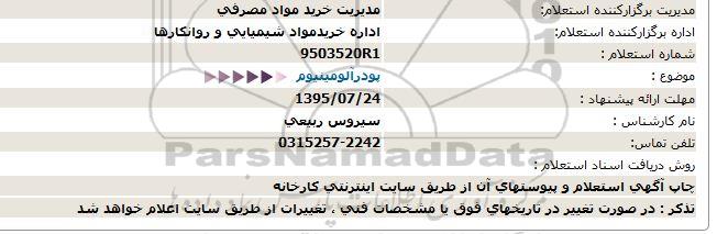 اداره برگزارکننده استعلام: اداره خرید مواد شیمیایی و روانکارها