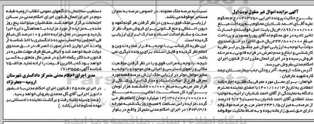 اگهی مزایده اموال منقول نوبت اول ؟