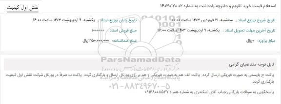 برای شرکت در مناقصه حتما از تصویر آگهی در سایت پارس نماد داده ها استفاده نمایید