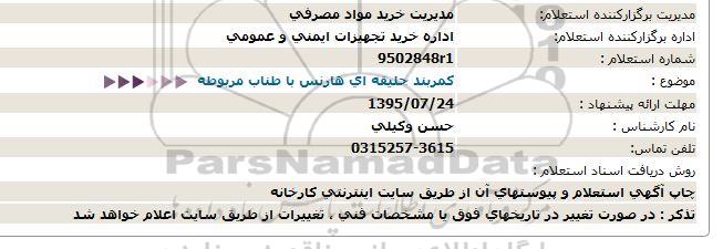 اداره برگزارکننده استعلام: اداره خرید تجهیزات ایمنی و عمومی
