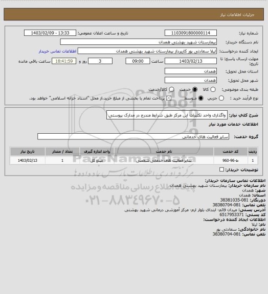 نام سازمان خریدار: بیمارستان شهید بهشتی همدان