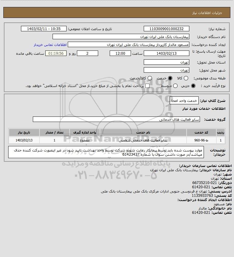 نام دستگاه خریدار:بیمارستان بانک ملی ایران تهران
